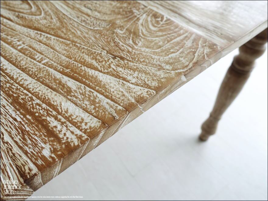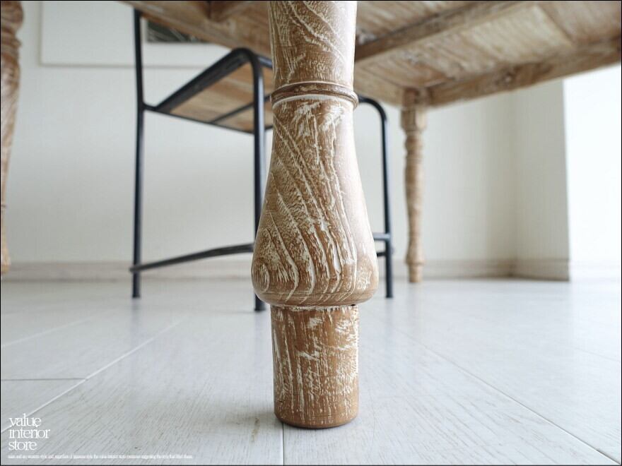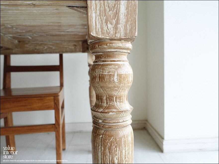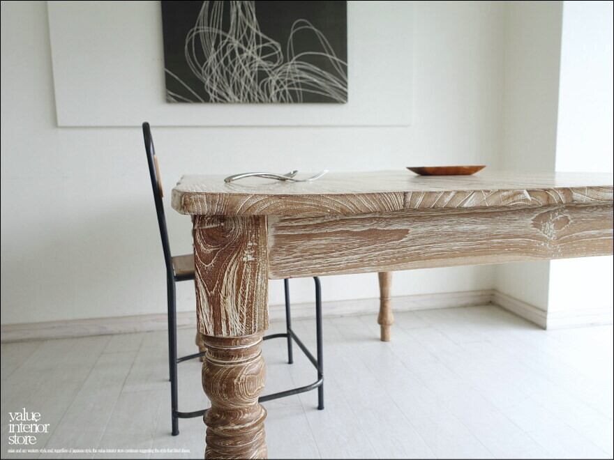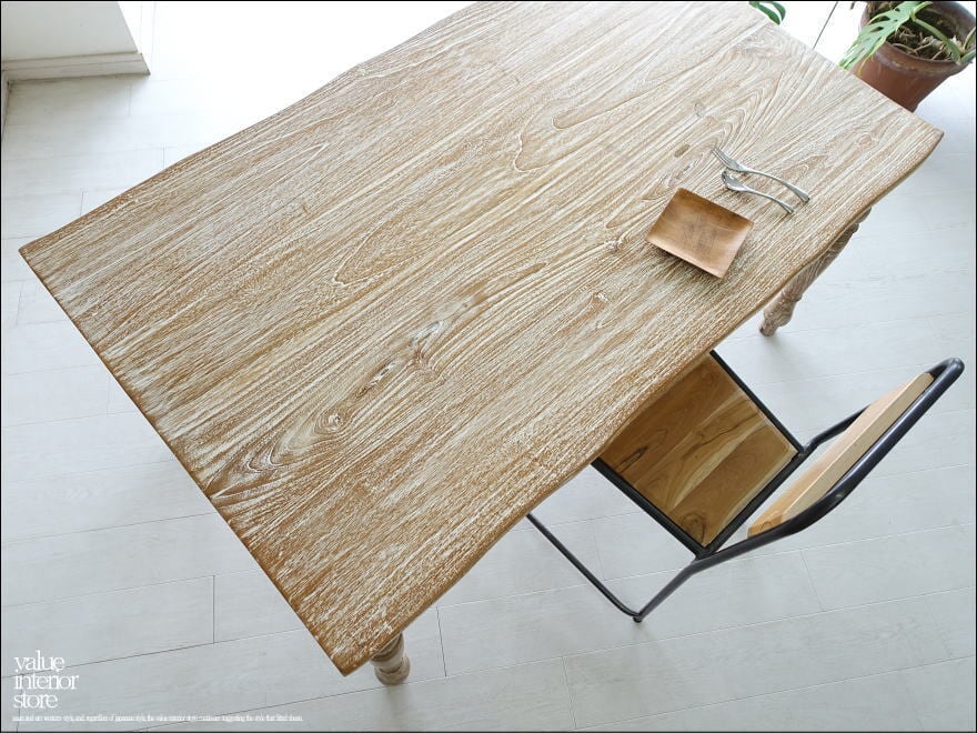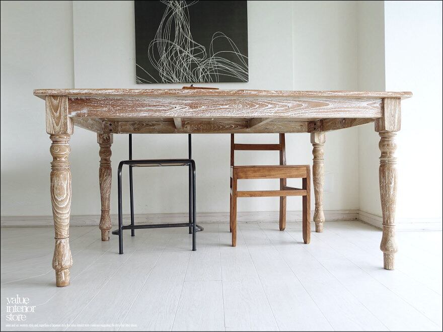 オールドチーク無垢材 ダイニングテーブルLW 食卓テーブル 机 古材家具 無垢材テーブル ナチュラルホワイト 150×88.5cm