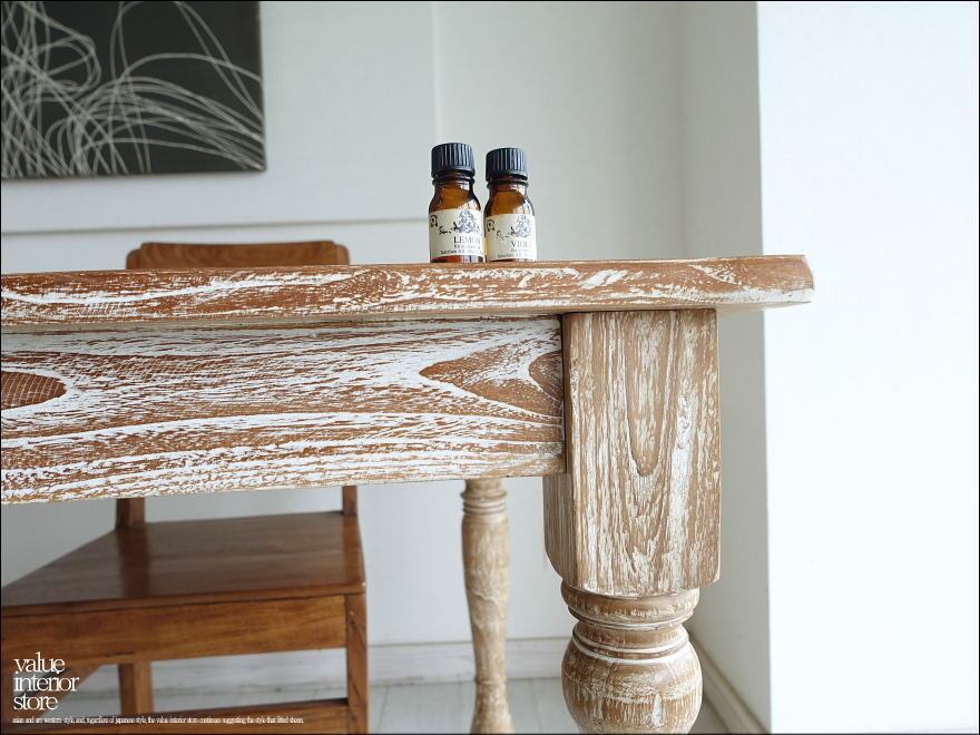 ◇日本製のような正確さは無いかもしれませんが、1点1点出来上がるまでの殆どの製作工程を手作業で行う、インドネシア家具職人たちの手づくり製法はとても暖か味が感じられます。細かな傷、ひび割れやフシ穴、お色の濃淡、また反りなどの無垢材特有の”暴れ”や修理痕が見受けられる場合がございますが、無垢材の素材や特徴、また手づくりのテイストとして工業品にはない自然の質感をお楽しみ下さい。(*オールドチークは素材上、凹凸などが見受けられますが、著しい場合は埋め直している場合がございます。)