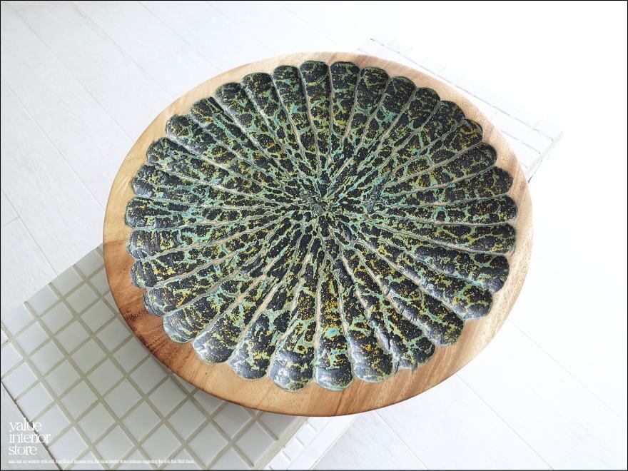 モンキーポッド総無垢材 デコレーショントレイE1 小物入れ 飾り皿 木製 菓子器 手作り エスニック ハンドメイド 総無垢 一点物 直径40cm