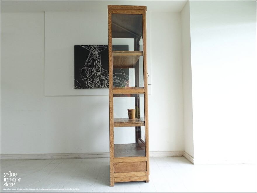 チーク無垢材 ヴィンテージキャビネットQ 食器棚 ショーケース 陳列棚 什器 アンティーク飾り棚 再生家具 表面再仕上 三大銘木 送料無料