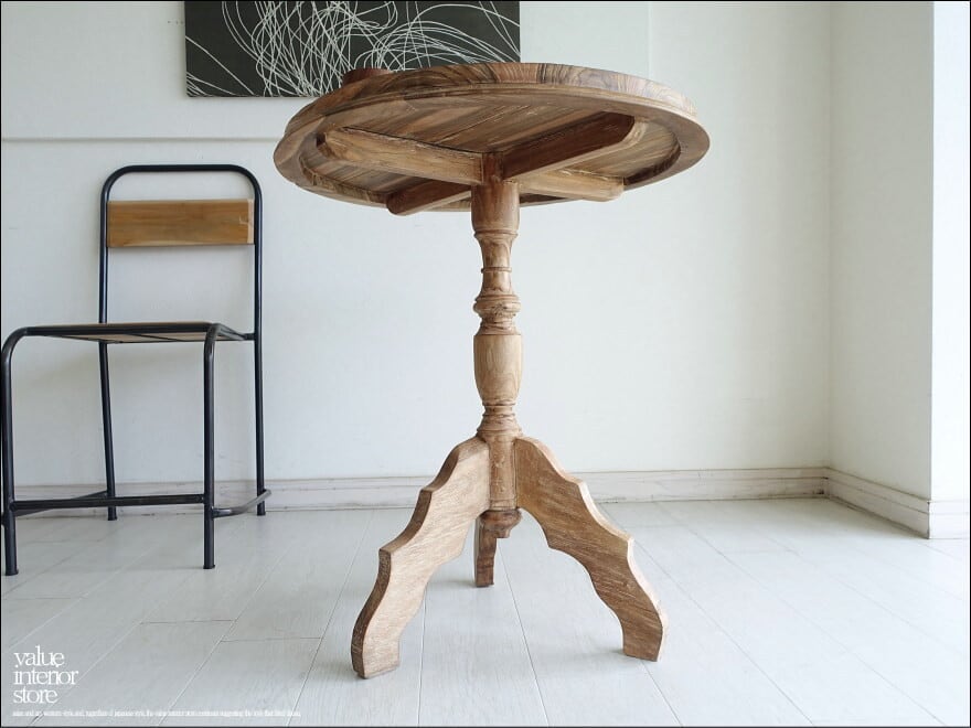 チーク無垢材 ヴィンテージサイドテーブルRound02 アンティークテーブル 什器 無垢材家具 丸テーブル 表面再仕上済 再生家具