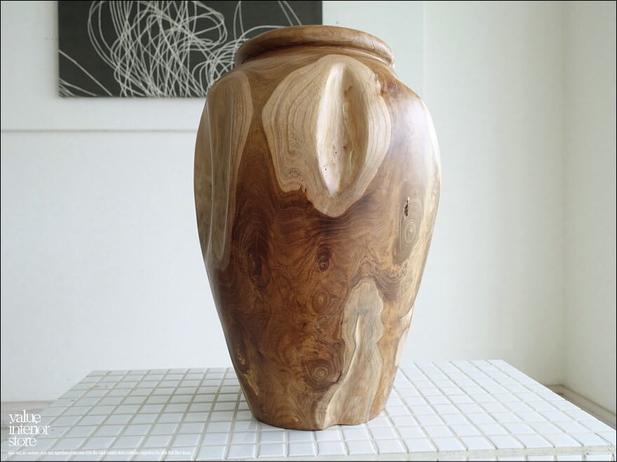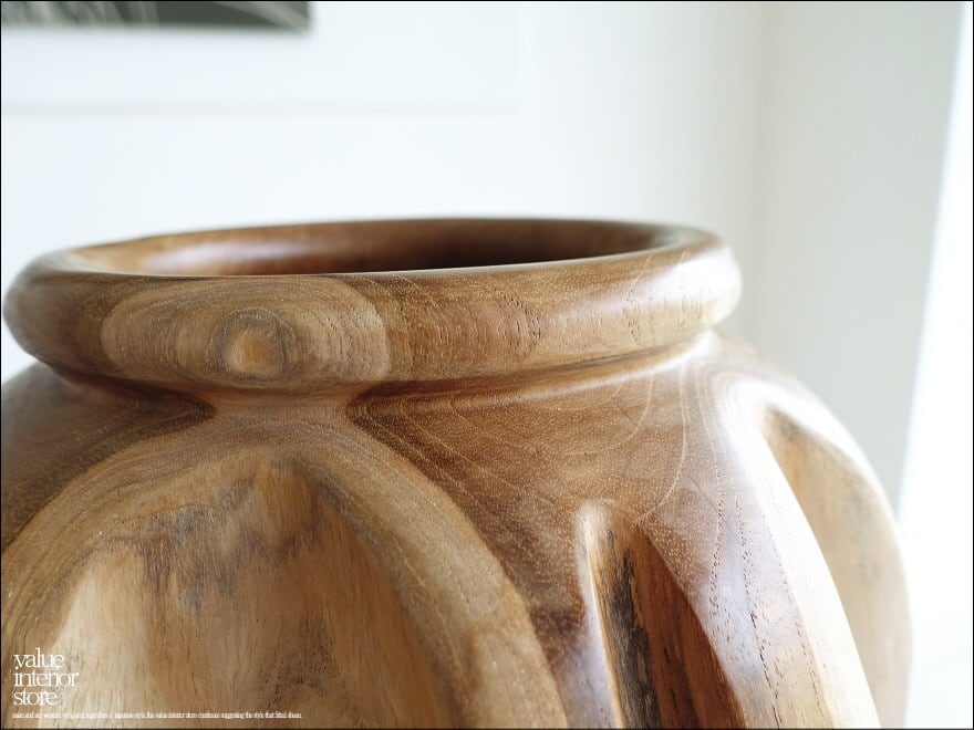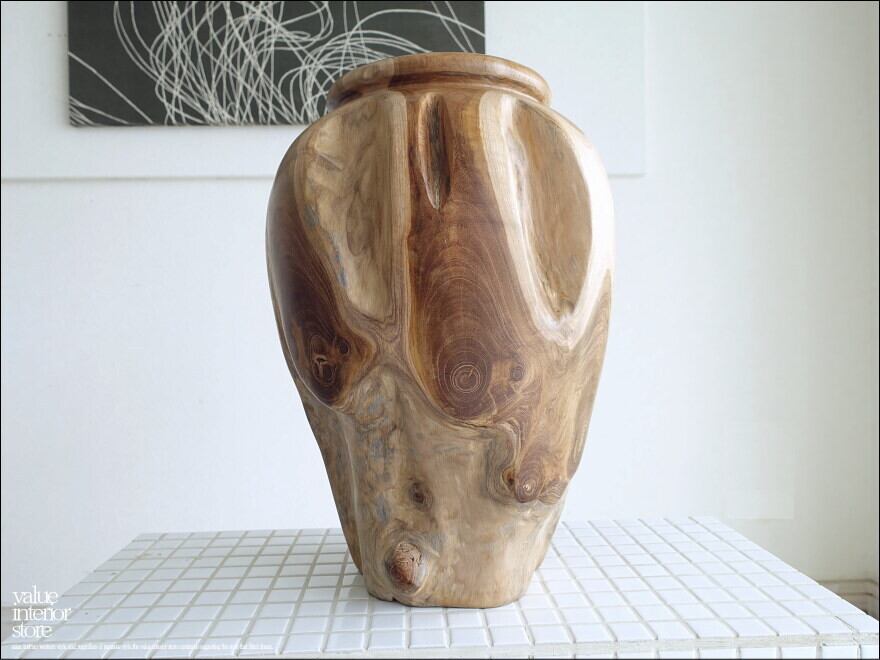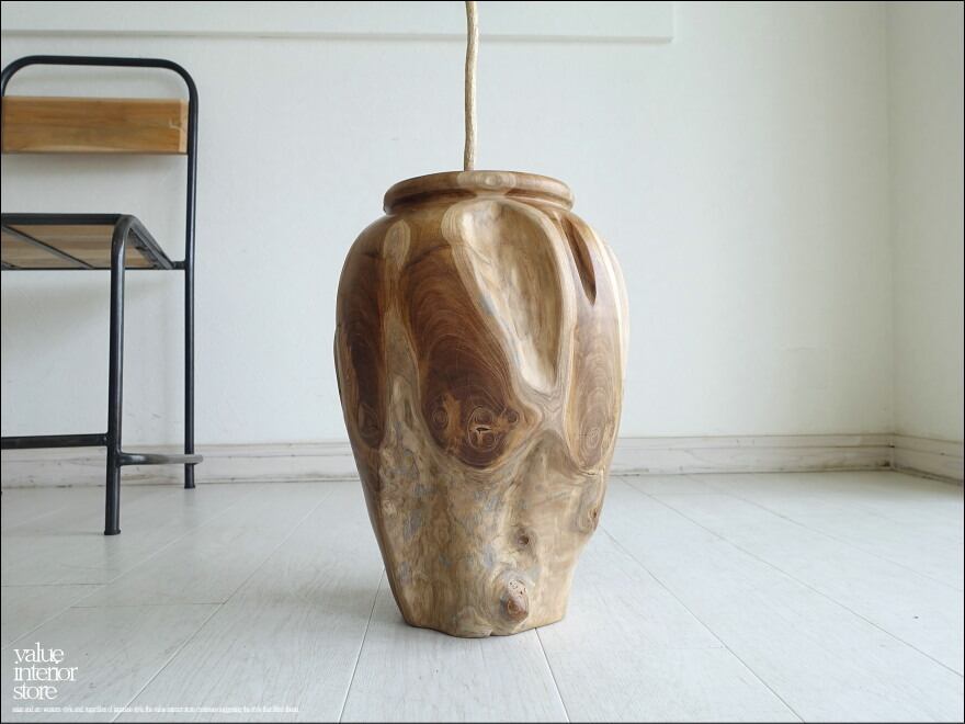 プリミティブなチーク材の味のある木目が魅力的な鉢カバー。