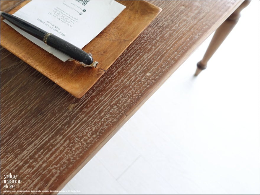 この商品は、表面再仕上げや欠損箇所の補修などをしている再生家具となります。元々の雰囲気は残して仕上げています。傷、ワレやフシ穴、色の濃淡、傾き、歪み、反り、汚れなどがございますが、素材や古いものの持つテイストとしてご理解をいただきますようお願い致します。