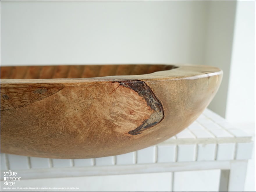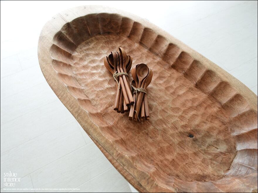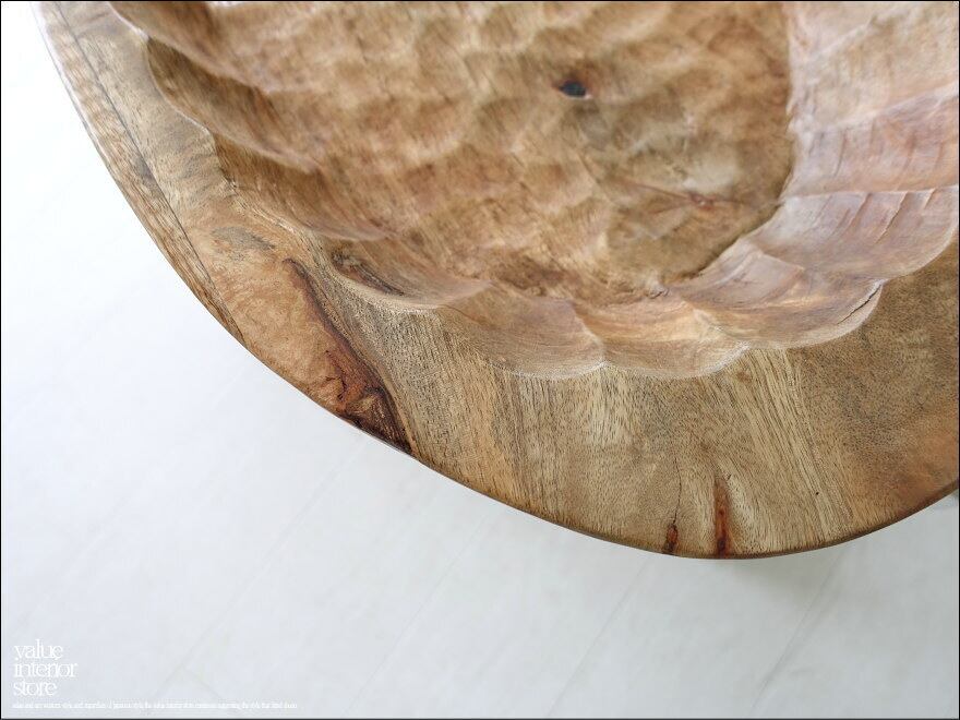 一つ一つ削り出して製作する無垢材のモンキーポッドの大型ウッドトレイ。