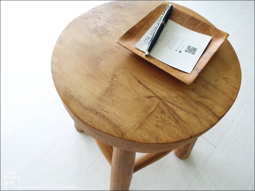 フレーム共にシッカリとした作りのチークスツール。木目が美しく素朴で魅力的です。椅子以外にもちょっとした飾り台としてもお使いいただけるデザインです。ショップなどのディスプレイ台、花台としても素敵ですね。