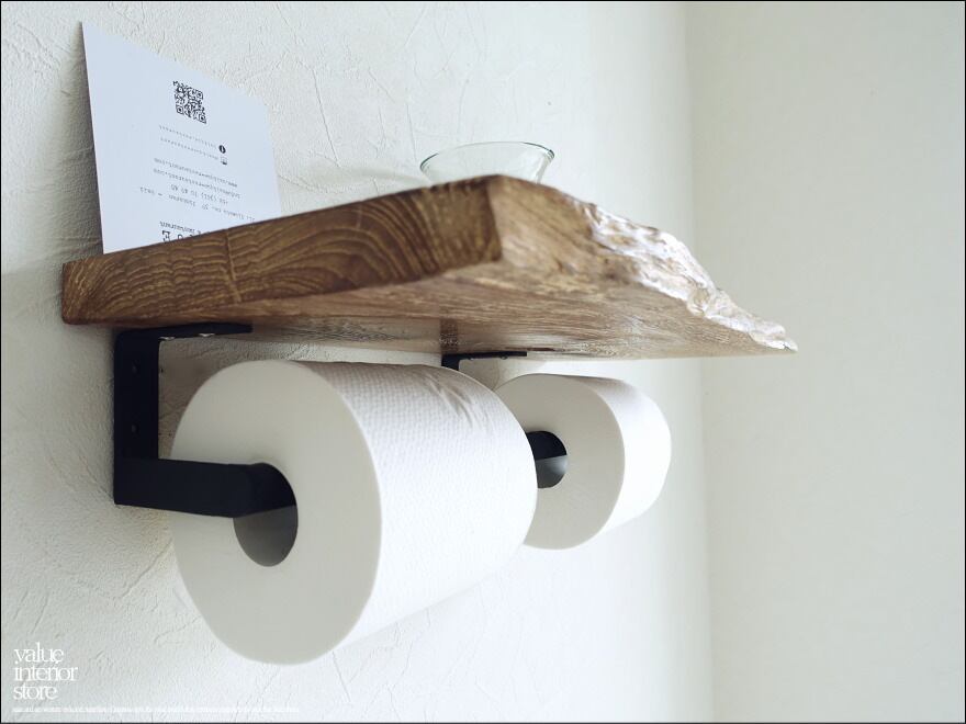 板の厚みも十分にあり、どっしりと存在感があります。2つのペーパーを設置でき、ペーパーは横からサッと通すだけの簡単セットなので便利ですよ。棚板にはお気に入りのインテリア小物やグリーンなどを飾ると素敵です。プライベートルームにもこだわりのインテリアをぜひこの機会にどうぞ。