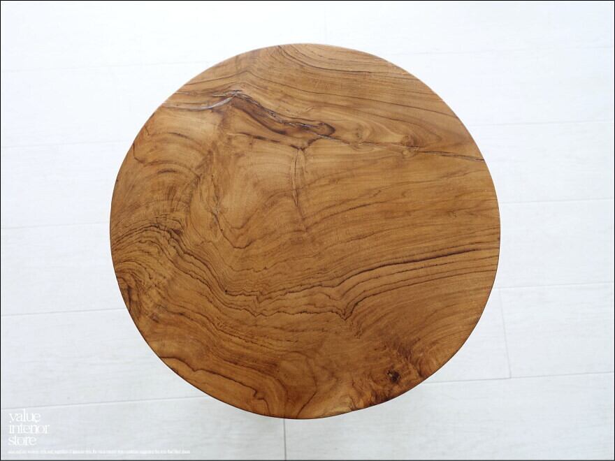 フレーム共にシッカリとした作りのチークスツール。木目が美しく素朴で魅力的です。椅子以外にもちょっとした飾り台としてもお使いいただけるデザインです。ショップなどのディスプレイ台、花台としても素敵ですね。