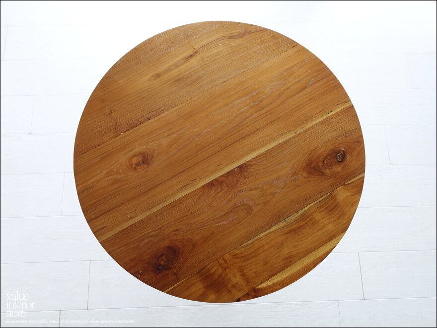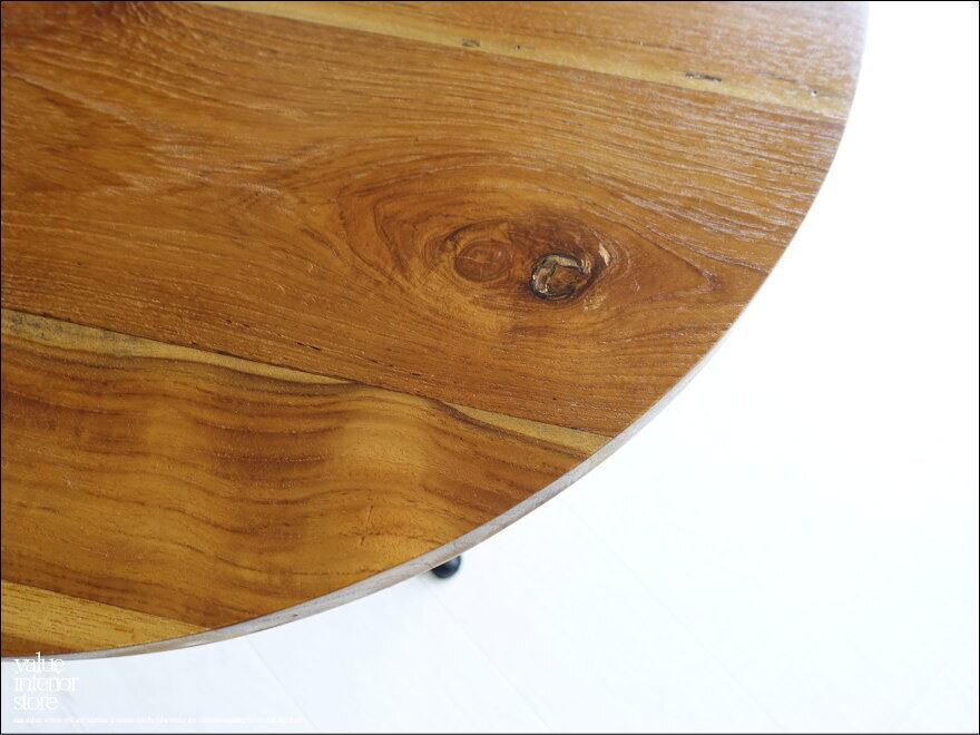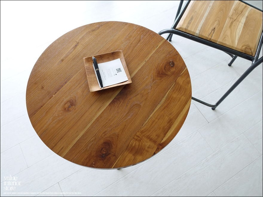 チーク無垢材 サイドテーブル丸 丸テーブル 円形テーブル 花台 鉄脚 手作り シンプル ナチュラル 銘木家具 Φ60xH50cm