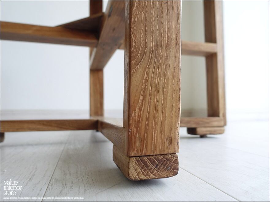 この商品は、表面再仕上げや欠損箇所の補修などをしているリメイク家具となります。元々の雰囲気は残して仕上げています。傷、ワレやフシ穴、落書き痕、色の濃淡、傾き、歪み、反り、汚れなどがございますが、素材や古いものの持つテイストとしてご理解をいただきますようお願いいたします。