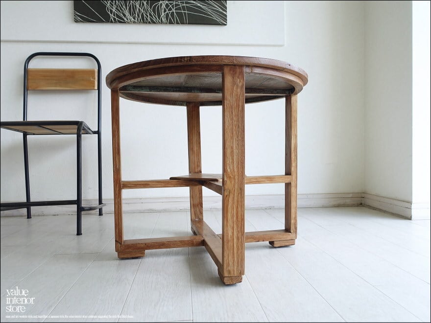 チーク無垢材 ヴィンテージサイドテーブルAnqbo15 丸テーブル 什器 コーヒーテーブル 一点物 再生家具 無垢材家具