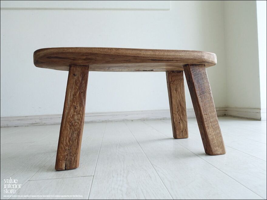 オールドチーク無垢材スツールPN03 ベンチ 椅子 古材家具 一枚板 総無垢 イス 一点物 プリミティブ 世界三大銘木