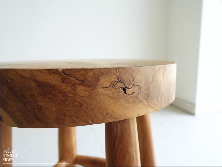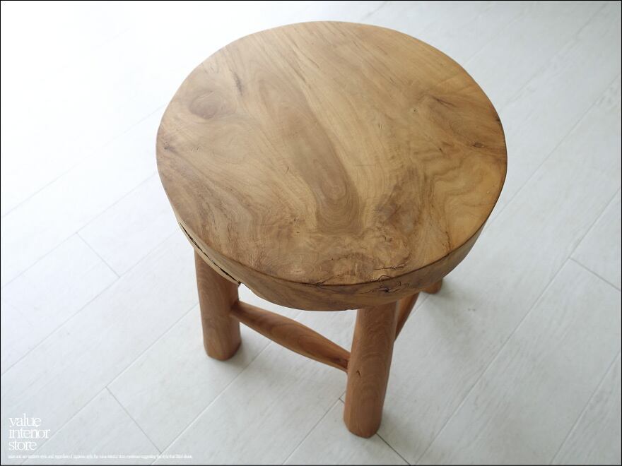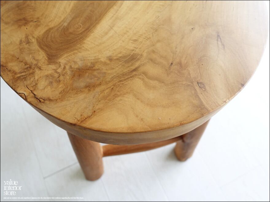 フレーム共にシッカリとした作りのチークスツール。木目が美しく素朴で魅力的です。椅子以外にもちょっとした飾り台としてもお使いいただけるデザインです。ショップなどのディスプレイ台、花台としても素敵ですね。