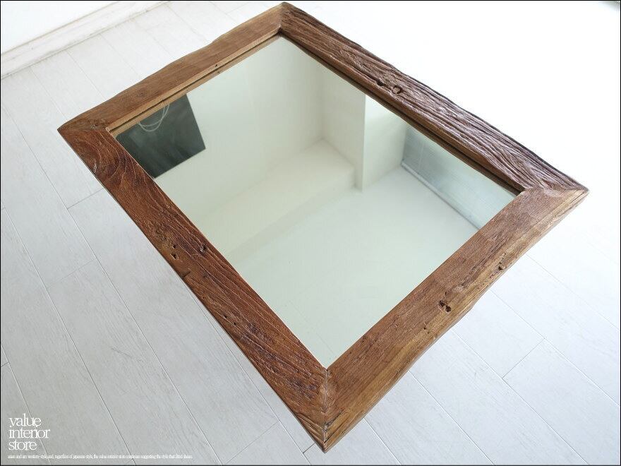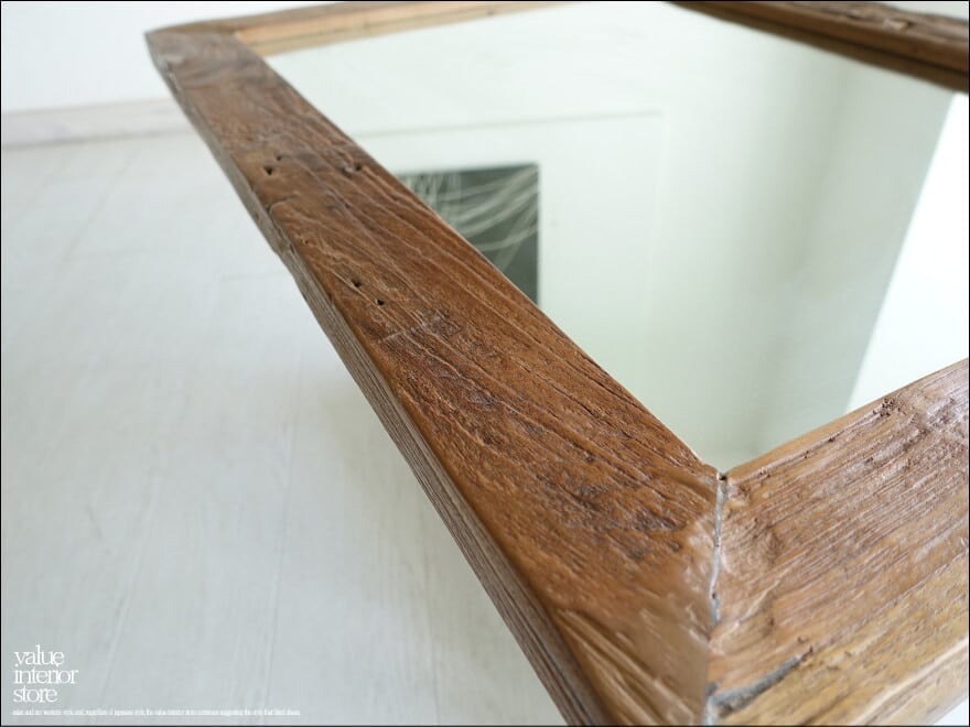 古材 鏡 壁掛けミラー オールドチークフレームミラー壁掛80/Y レトロ 手作り 総無垢 自然な様 古材家具 送料無料 W60 x H80cm