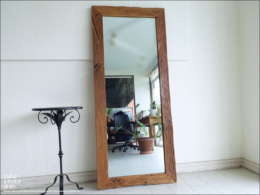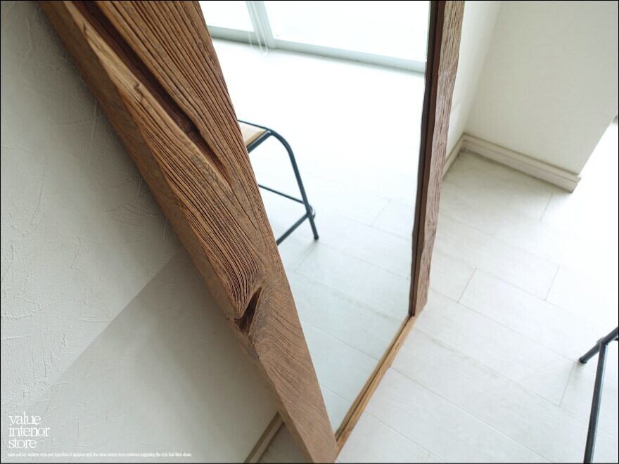 オールドチーク総無垢 ミラー140cm L/29 姿見 鏡 全身鏡 古材 全身用 手作り ナチュラル レトロ 世界三大銘木 送料無料 60cm x 140cm
