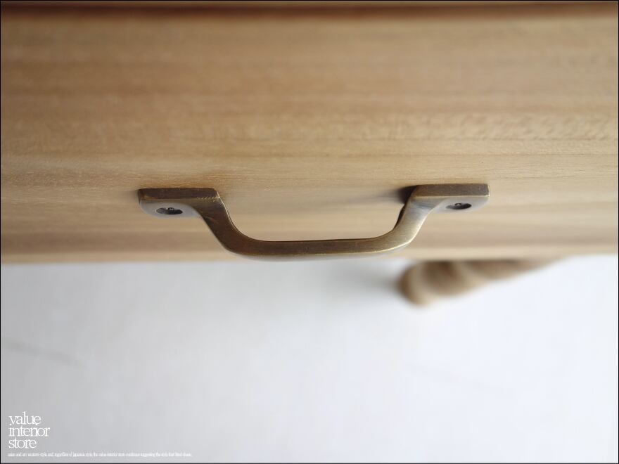 ・素材 : チーク総無垢、ガラス、真鍮(取っ手)、(引き出しの底のみ合板)