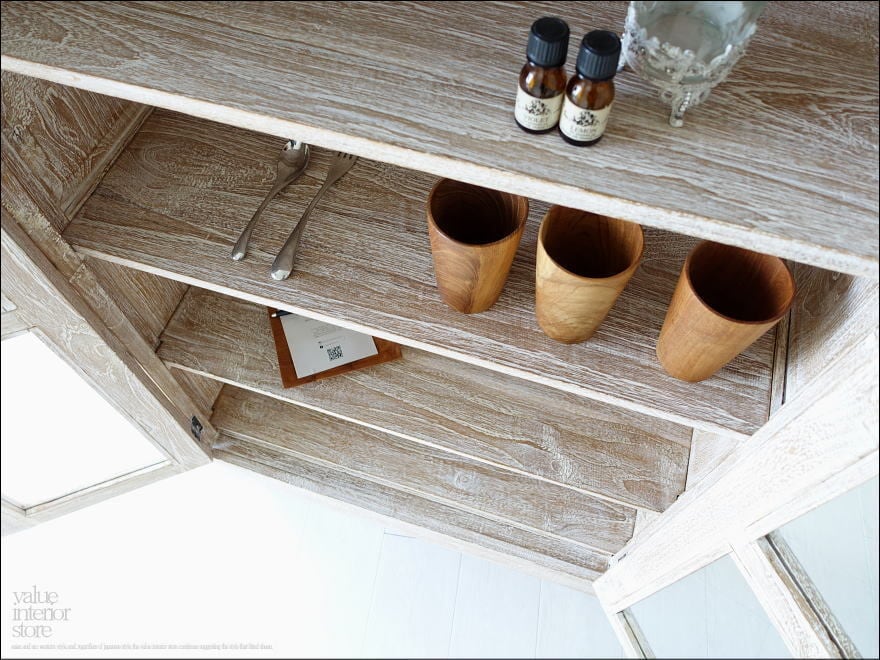 戸棚ER/WW 食器棚 飾り棚 ショーケース ガラスケース キャビネット 水屋 シャビー 手作り 収納棚 戸棚 銘木 什器 無垢材家具