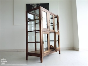 「 U様 御予約商品 」チーク総無垢 ガラスパンケース6枚扉Med ショーケース コレクションケース 陳列棚 店舗什器 ガラスケース 飾り棚 真鍮金物 新品 送料無料