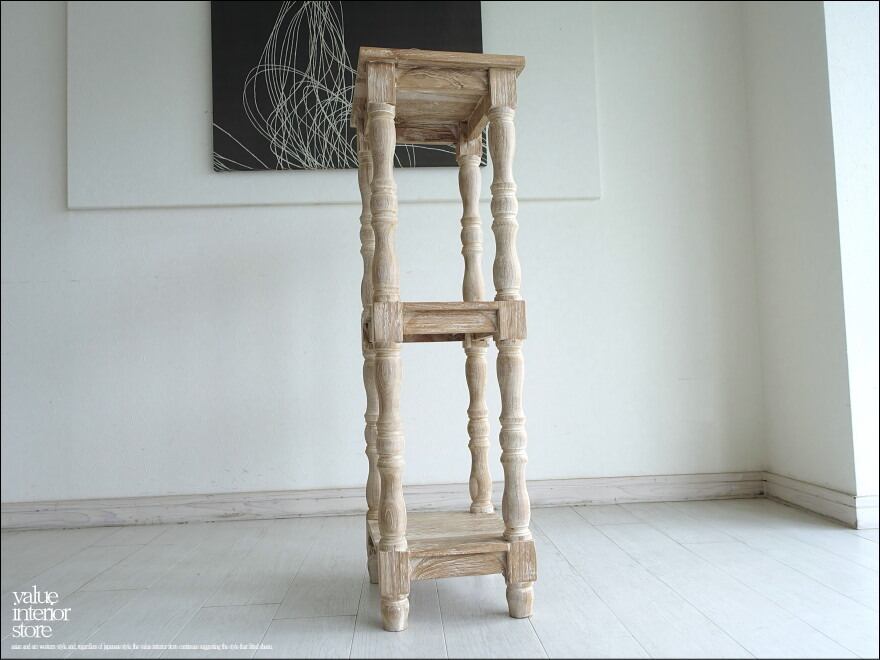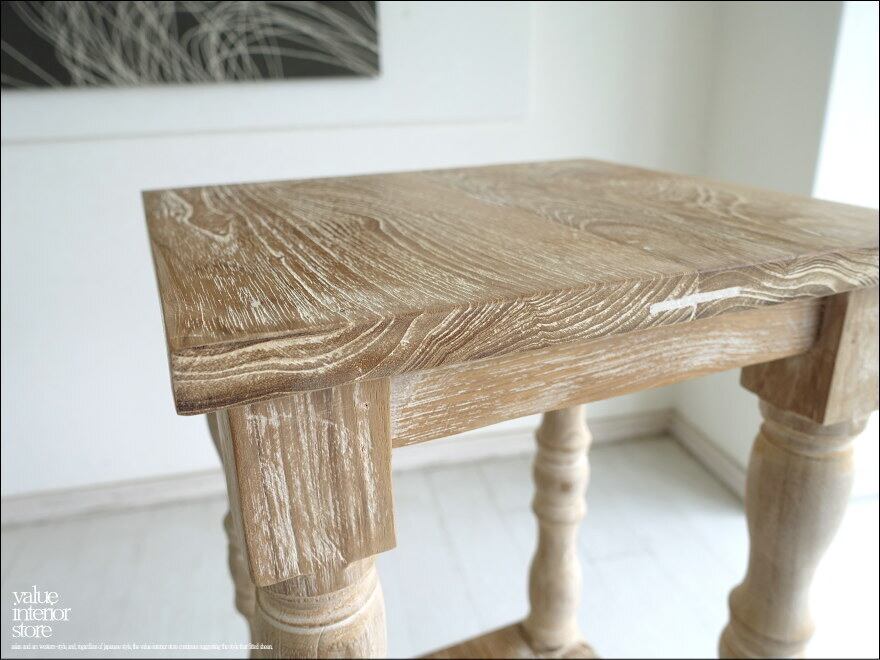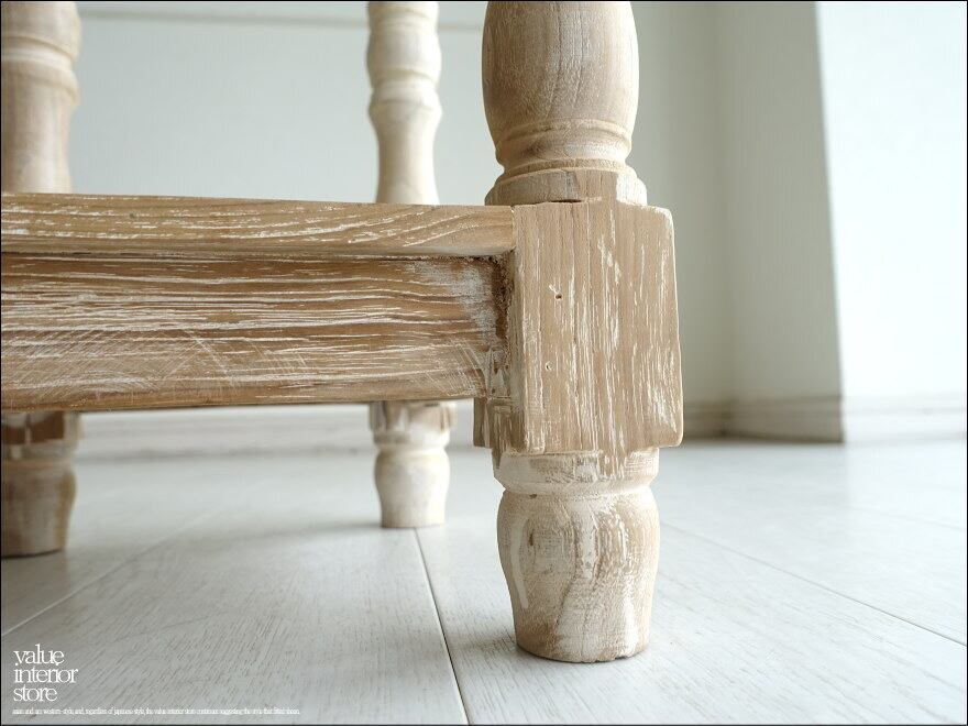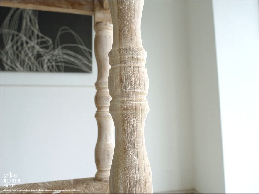 表面は凹みに白色を薄く残したナチュラルホワイト仕上げ。表面仕上げに一工夫することで、一層素朴で明るい雰囲気に仕上がりました。余分な装飾を無くしたシンプルな棚板と、丸く柔らかな印象の脚とのバランスがとってもかわいいですよ。きっとお部屋を素敵な雰囲気に包んでくれます。
