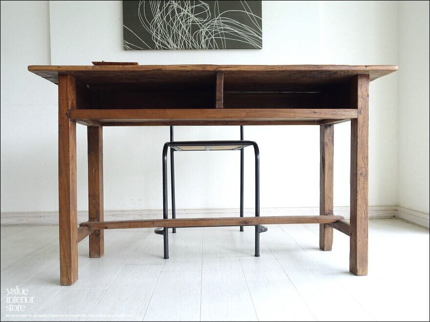 チーク無垢材 ヴィンテージスクールデスクAnq02 机 パソコンデスク PCデスク コンソールデスク 一点物 再生家具 表面再仕上済 W118cm