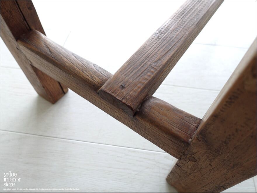 一度主要フレームを分解後、組み立て直し、表面を研磨してワックスで仕上げていますので、経年変化を更に感じられる仕上がりです。本来の質感を損なわず、新しいものとして生まれ変わっています。スローダウンした雰囲気はそのままに、これからも永くお使いいただけます。西洋、アジアン、和風モダン、北欧など幅広いテイストのインテリアと相性良くコーディネートできますのでお気に入りスペースでお使いください。
