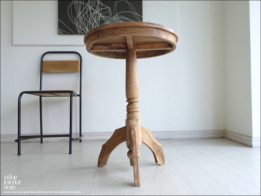 チーク無垢材 ヴィンテージサイドテーブルRound03 アンティークテーブル 什器 無垢材家具 丸テーブル 表面再仕上済 再生家具