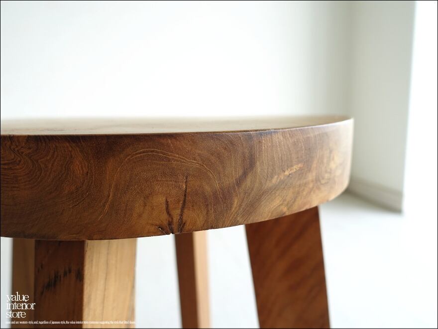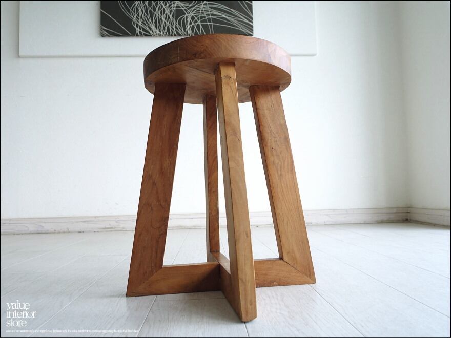 フレーム共にシッカリとした作りのチークスツール。木目が美しく素朴で魅力的です。椅子以外にもちょっとした飾り台としてもお使いいただけるデザインです。ショップなどのディスプレイ台、花台としても素敵ですね。