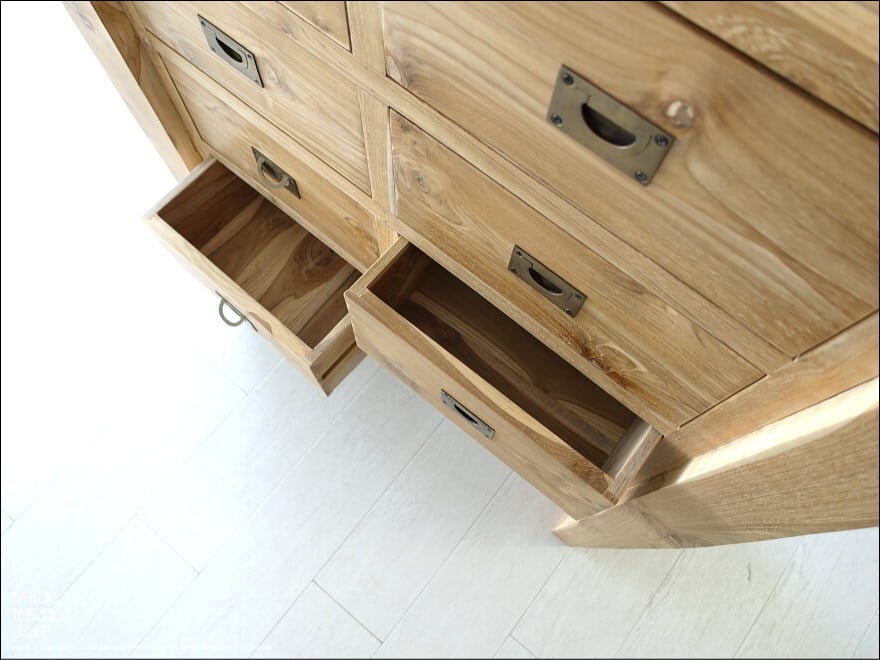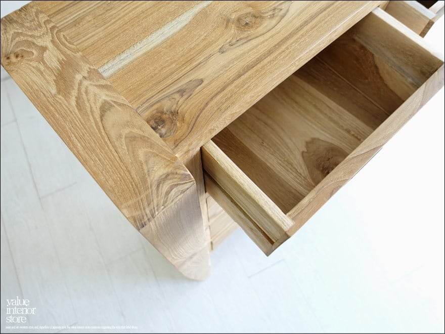 スマートな脚のデザインで、程よいサイズの引き出しは便利に収納できます。チークは良質な油を含みますので、徐々にいわゆるチーク色に色に変化していく過程もお楽しみいただけます。