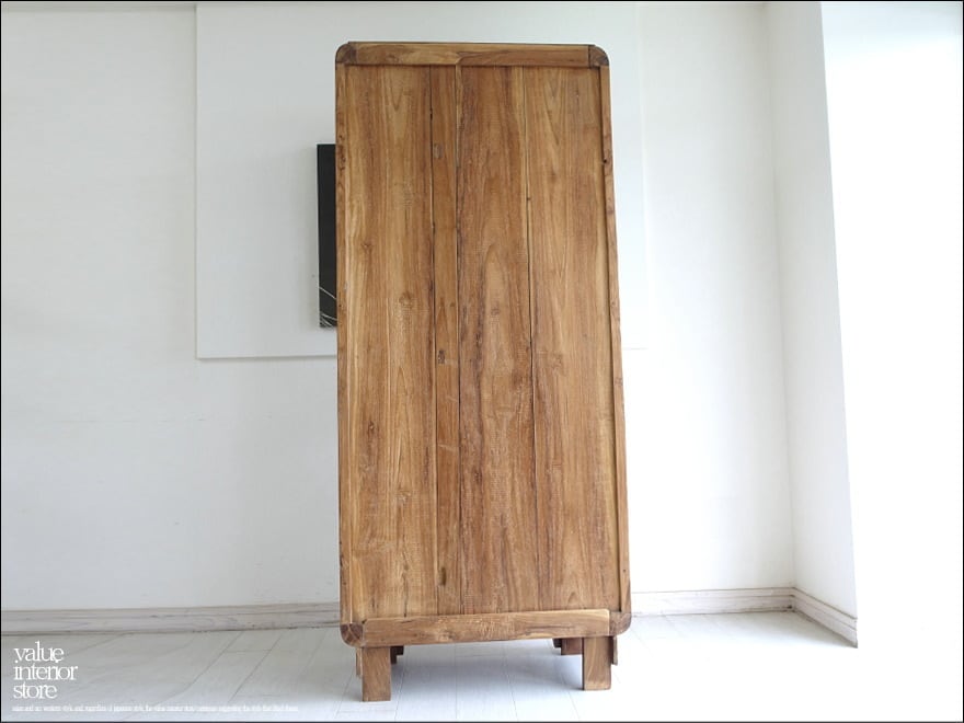 古い歴史を感じさせる佇まいが魅力のチーク総無垢のアンティークキャビネット。