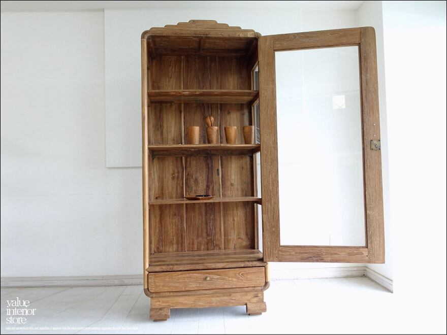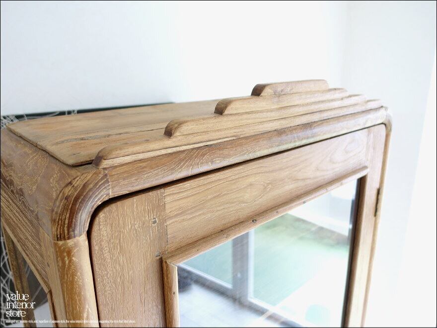 チーク無垢材 ヴィンテージキャビネットX 食器棚 ショーケース 陳列棚 什器 アンティーク飾り棚 再生家具 表面再仕上 三大銘木 H184cm