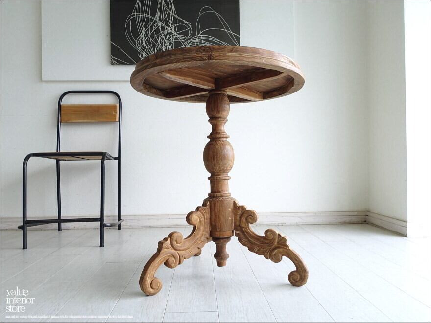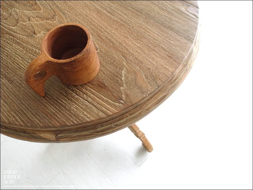 チーク無垢材 ヴィンテージサイドテーブルRound/Ⅰ アンティークテーブル 什器 無垢材家具 丸テーブル 表面再仕上済 再生家具