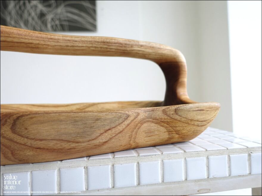一つ一つ削り出して製作する無垢材のチーク材のウッドトレイ。