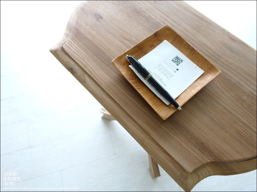 一目見ただけで木目の味わい深さを感じられるチークのテーブル。落ち着いた雰囲気があります。