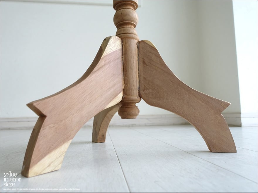 チークの硬く張りのある特徴が伝わってきて、脚と天板のバランスもとても上品です。シンプルなデザインで、チークの良さを存分に楽しんでいただける、とてもステキなカフェテーブル。