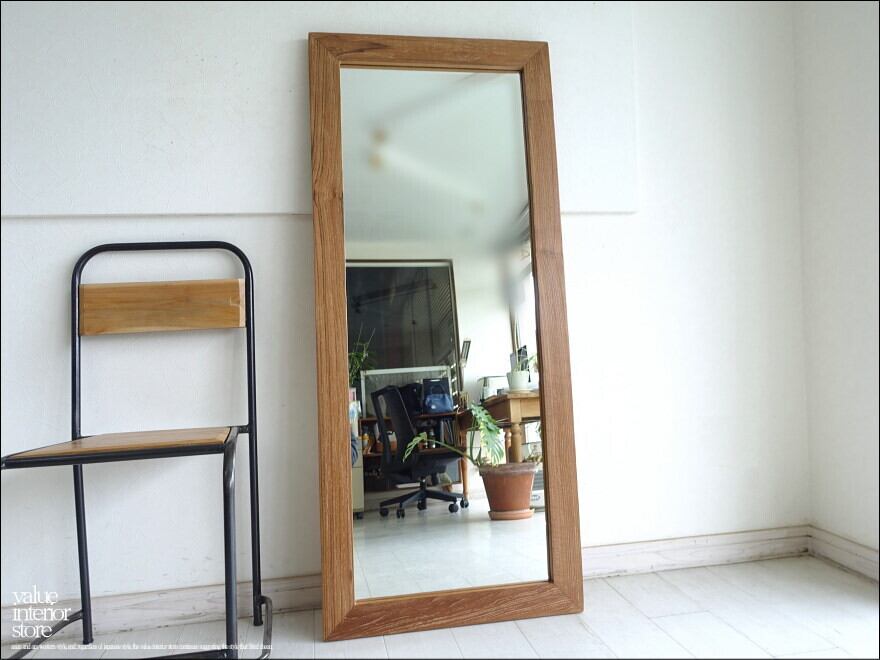 オールドチーク総無垢 ミラー140cm L/31 姿見 鏡 全身鏡 古材 全身用 手作り ナチュラル レトロ 世界三大銘木 60cm x 140cm