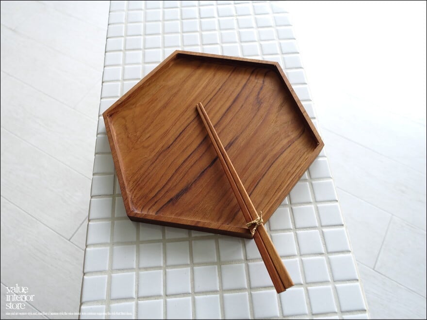 チークプレート六角皿/M 木皿 中皿 平皿 お盆 トレー サービングトレイ パンプレート 木の皿 お皿 和食器 無垢材食器 idakaku