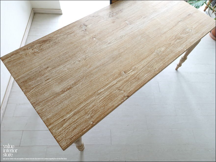 オールドチーク無垢材 ダイニングテーブルSlenWW 食卓テーブル 無垢材テーブル 机 古材家具 ナチュラルホワイト W180cm (表面再仕上済品)