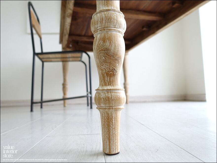 表面仕上により新鮮さを感じつつも落ち着いた大人の雰囲気があります。チークの渋く硬い特徴を引き出す角型の天板を柔らかな丸脚が支えていて、そのバランスが上品です。シンプルなデザインで、チークの良さを存分に楽しんでいただける、とてもステキなダイニングテーブル。こんなテーブルで毎日食事ができたらペースダウンできステキでしょうね。ショップやカフェのテーブルとしてもおすすめです。