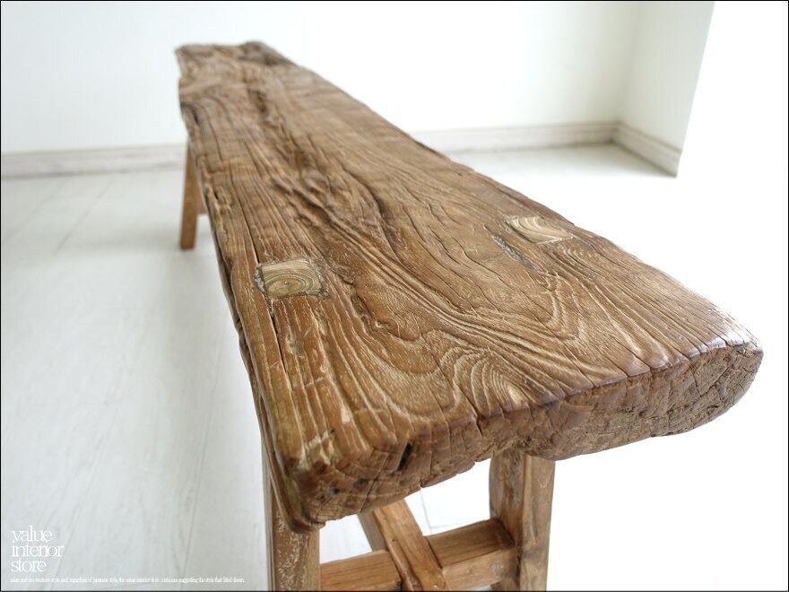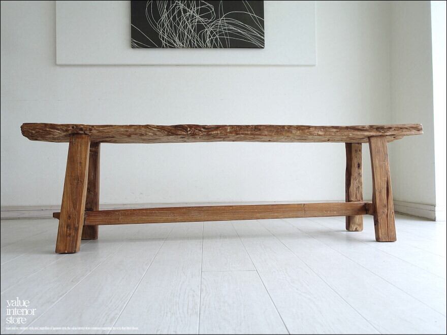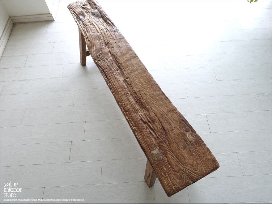 プリミティブオールドチークベンチ Z1 長椅子 スツール 古材家具 ダイニングベンチ 一枚板 無垢材 古材家具 一点物 幅152cm