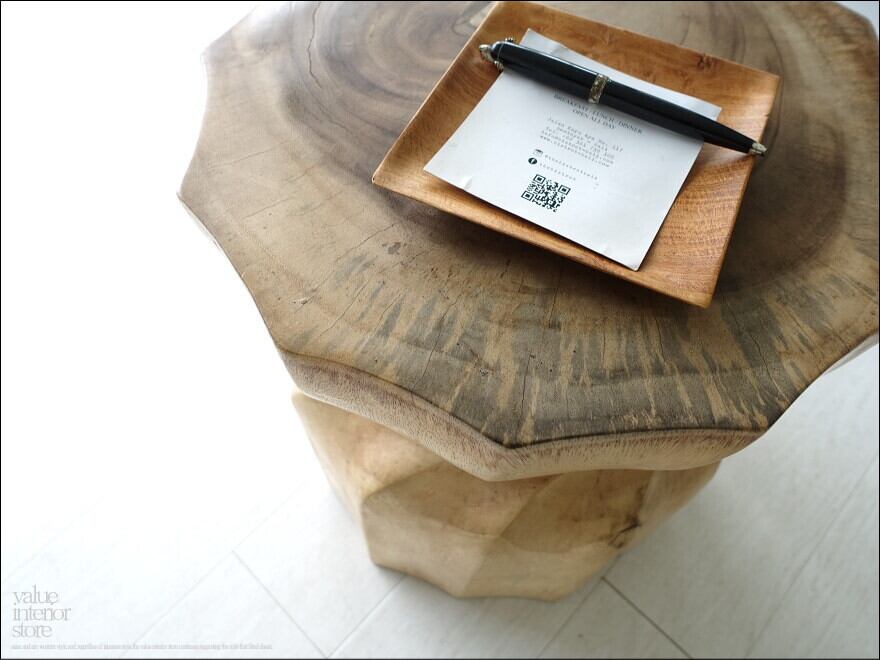 モンキーポッド材の緩やかな木目が優しい印象のスツール。丸太より削り出して製作していますので、どっしりとした重さがあります。ナチュラルな雰囲気で幅広いテイストに合わせやすく設置しやすいスツール。スツール以外にも花台やディスプレイ台としてもお勧めいたします。お気に入りの空間でお使い下さい。
