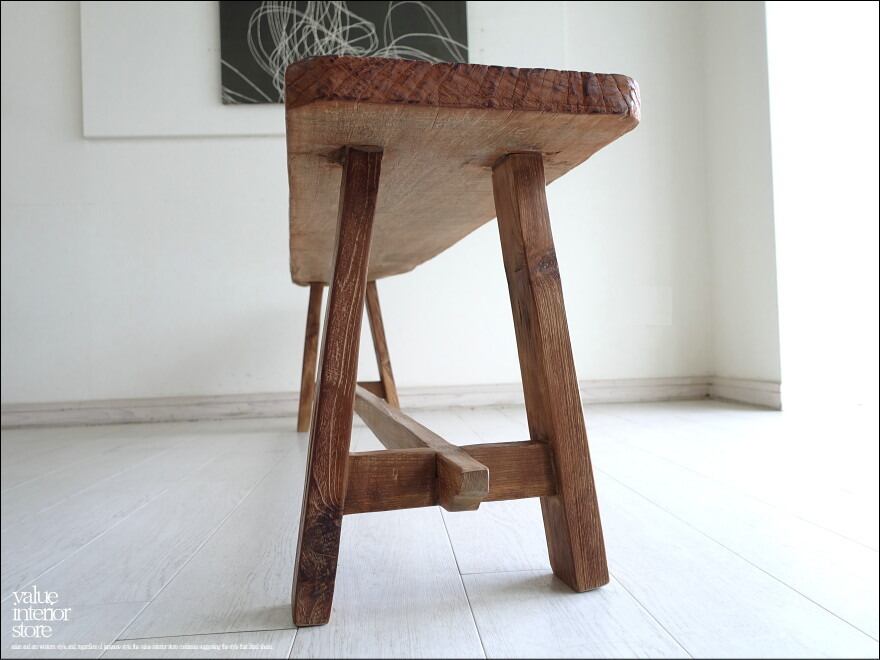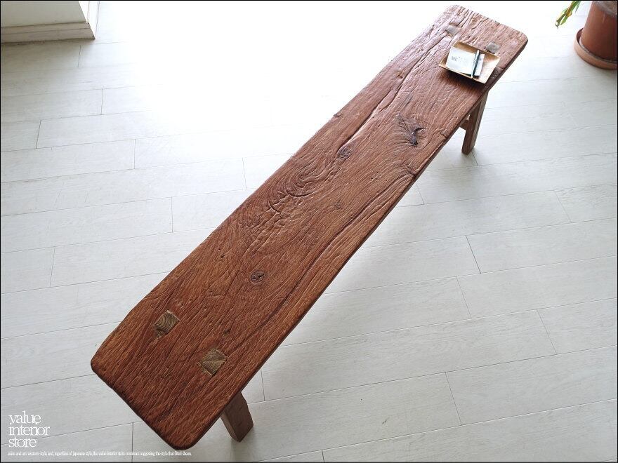 オールドチークベンチ X1 長椅子 古材家具 ダイニングベンチ イス 一枚板 プリミティブ 無垢材 古材家具 一点物 W159cm