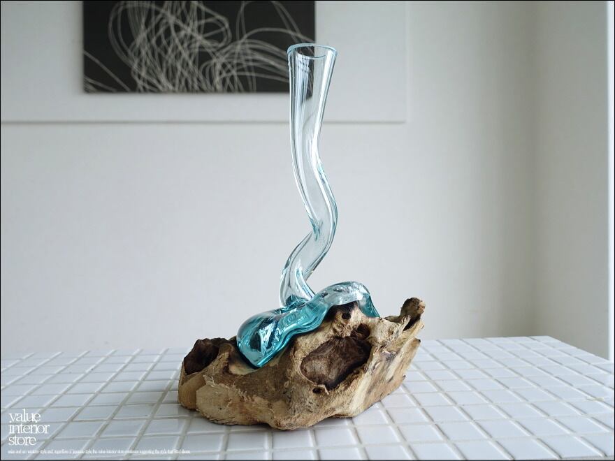 硝子フラワーベースTwis/02 花瓶 プリミティブガラスベース 手作り 一輪挿し 一点物 ハンドメイド 無垢材 自然な様