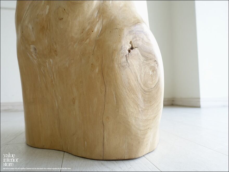 一本のチーク材から製作した丸太のスツール。そのままを輪切りにしてますのでチーク材独特の張りと硬さを全面から感じていただけます。表面はユーカリより抽出したものを塗布しています。無着色ですのでナチュラルで渋く変わり行くチーク独特の色の変化(いわゆる徐々にチークカラーへの変化)をお楽しみいただけます。ナチュラルでシンプルなデザインで幅広いテイストの空間に似合います。スローダウンした雰囲気づくりをどうぞ。