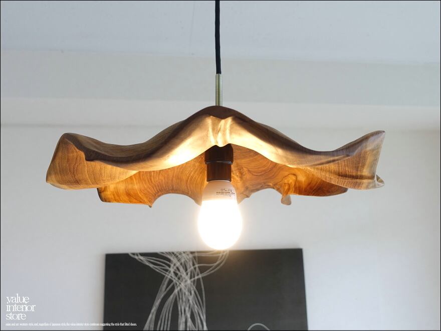 チーク無垢材 ペンダントライトFlare/Lsize04 天井照明 照明器具 ランプシェード 明かり 吊り下げ灯 手作り 削り出し 世界三大銘木 『一点物』