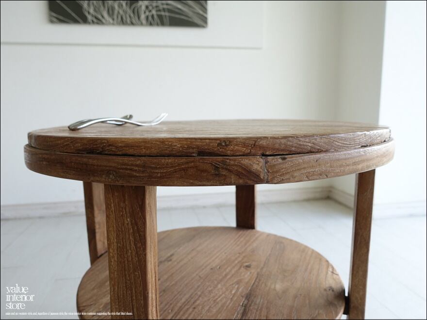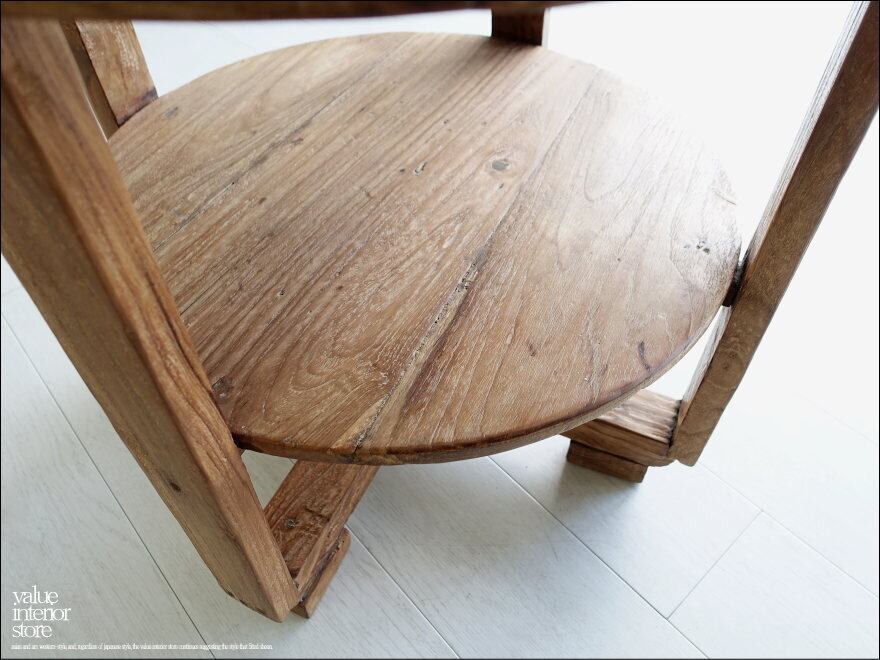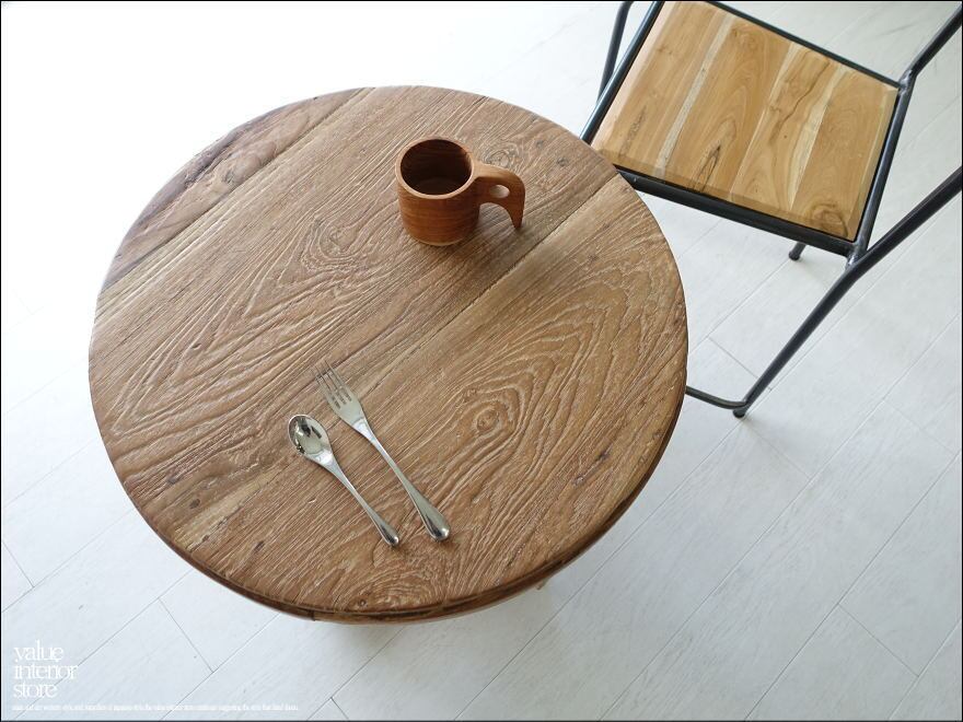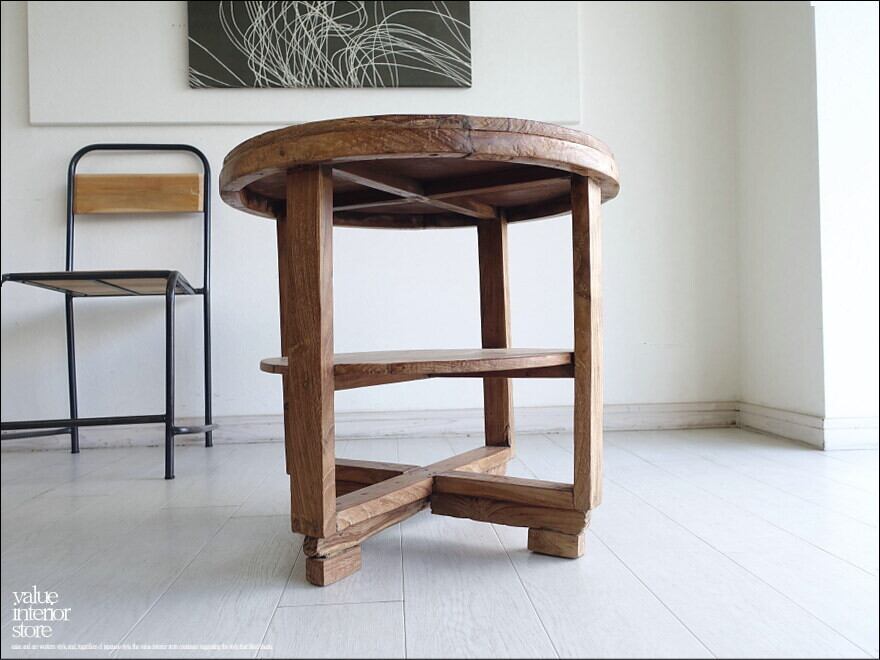 チーク無垢材 ヴィンテージサイドテーブルBoln01 丸テーブル 什器 コーヒーテーブル 一点物 再生家具 無垢材家具