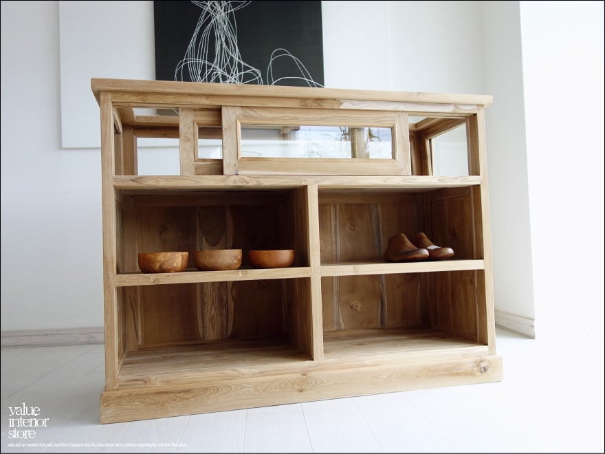 「 S様 御予約商品」チーク総無垢 ショーケースカウンターNatla ガラスケース 飾り棚 店舗什器 レジ台 シャビーシック 送料無料 手作り 無垢材家具 W120cm