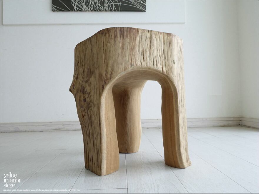 チーク無垢材 削り出しスツールTriXX01 イス プリミティブチェア 丸太 ベンチ 椅子 花台 ナチュラル 素朴 一点物 16kg