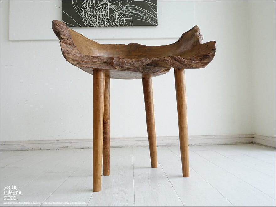 チーク無垢材 プリミティブチェアN06 イス 椅子 ベンチ 木製チェアー 天然木 手作り ナチュラル 素朴 銘木家具 一点物