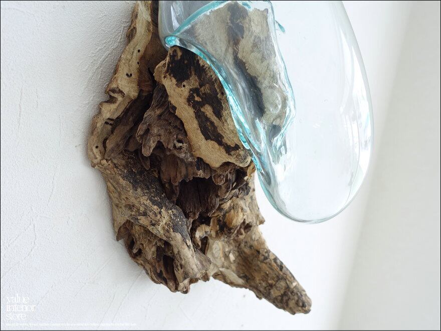 硝子フラワーベースwall/02 花瓶 プリミティブガラスベース 壁掛け 一輪挿し 吹きガラス 手づくり 無垢材 自然な様