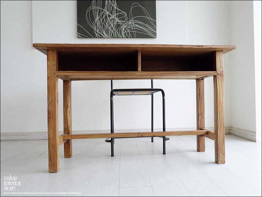 チーク無垢材 ヴィンテージスクールデスクAnq04 机 パソコンデスク PCデスク コンソールデスク 一点物 再生家具 表面再仕上済 W117cm