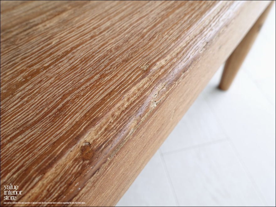 この商品は、表面再仕上げや欠損箇所の補修などをしているリメイク家具となります。元々の雰囲気は残して仕上げています。傷、ワレやフシ穴、色の濃淡、傾き、歪み、反り、埋木、汚れなどがございますが、素材や古いものの持つテイストとしてご理解をいただきますようお願い致します。